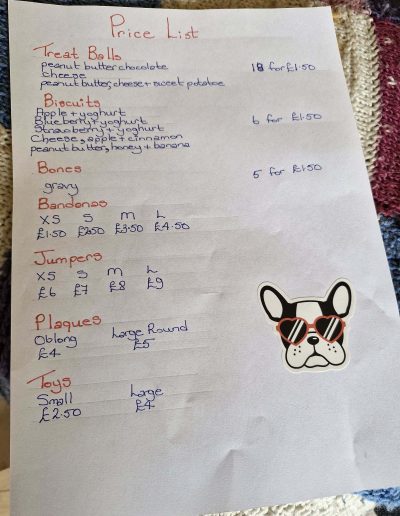 I started Waggy Tails Treats after being made redundant. I have a very old Jack Russell with Parkinson’s and a Yorkshire Terrier with allergies. With a lot of time on my hands I actually looked at what was in the treats I was feeding my dogs and they were full of rubbish. I spent months looking into what was beneficial. I tried recipes on my 4 and if they liked them I tried them on the dogs we met on our walks. Most of their owners gave me the push to start my own business and so Waggy Tails Treats was born. After 20 years in catering, I am now combining my 2 passions, cooking and dogs.